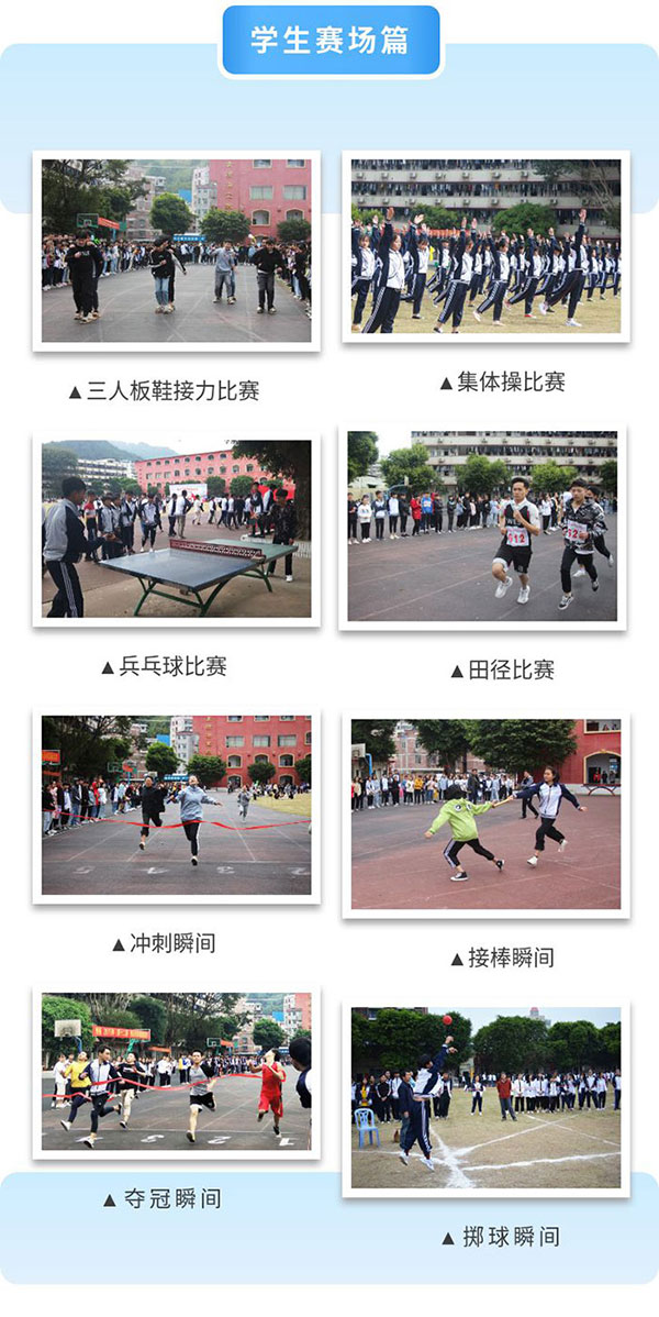 本屆運(yùn)動會同學(xué)們以文明的風(fēng)尚、拼搏的精神、少年的風(fēng)采、健壯的體魄馳騁于賽場。通過本屆校運(yùn)會,進(jìn)一步增強(qiáng)了團(tuán)隊(duì)凝聚力,堅(jiān)定了運(yùn)動員們力爭上游的決心,激發(fā)了同學(xué)們積極參加體育活動的熱情,還豐富了校園文化內(nèi)涵!